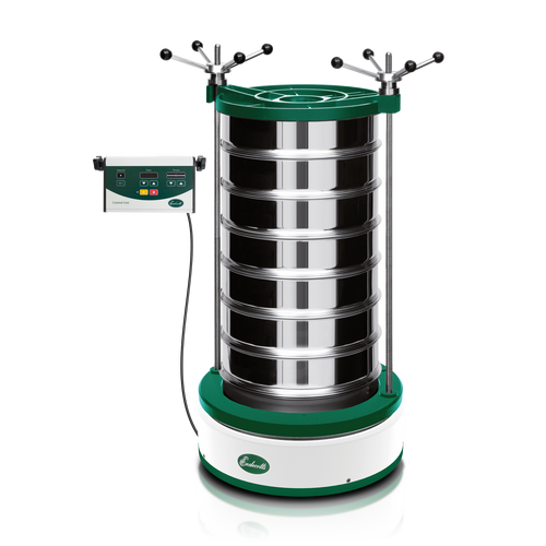 The Endecotts Titan 450 is a vibrating shaker that is used to carry out sieve tests in conjunction with sieve stacks for particle sizing of various material samples. It is based on an electromagnetic drive, with special carbon fibre springs that are set at a calculated angle to provide a horizontal twist, as well as a vertical movement to carry out efficient sieve tests.