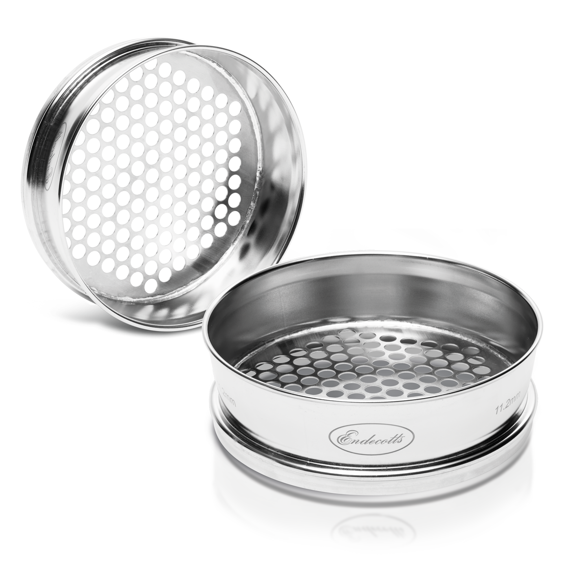 Endecotts manufacture a wide range of perforated plate sieves for the many industries that require them. These are available in diameter sizes of 200*, 300*, 400 and 450 mm. Aperture sizes range from 125 mm to 4 mm in square hole and 125 mm to 1 mm in round hole sieves. Perforated plate sieves can be supplied in frame materials of stainless steel or brass (*200 and 300mm) and are all manufactured to the highest engineering standards to ensure quality and accuracy. Woven wire sieves and perforated plate sieves are available to every national and international standard.